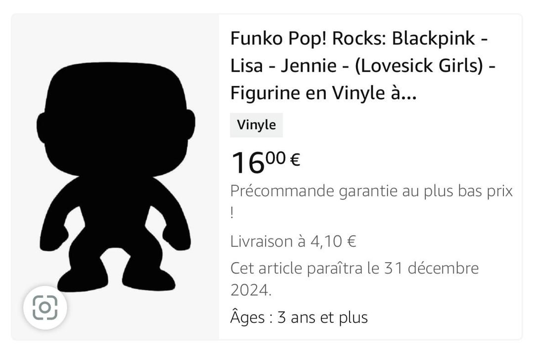 [Jisoo](https://www.amazon.fr/Funko-Pop-Rocks-Blackpink-Collectionner/dp/B0CGGQMRYC/ref=mp_s_a_1_7?crid=2CN05UPJSAA6I&keywords=Blackpink+funko&qid=1704569303&sprefix=blackpink+funko%2Caps%2C154&sr=8-7). [Jennie](https://www.amazon.fr/Funko-Pop-Rocks-Blackpink-Collectionner/dp/B0CGGPG1MY/ref=mp_s_a_1_4?crid=2CN05UPJSAA6I&keywords=Blackpink+funko&qid=1704569303&sprefix=blackpink+funko%2Caps%2C154&sr=8-4). [Rosé](https://www.amazon.fr/Funko-Pop-Rocks-Blackpink-Collectionner/dp/B0CGGL548X/ref=mp_s_a_1_5?crid=2CN05UPJSAA6I&keywords=Blackpink+funko&qid=1704569303&sprefix=blackpink+funko%2Caps%2C154&sr=8-5). [Lisa](https://www.amazon.fr/Funko-Pop-Rocks-Blackpink-Collectionner/dp/B0CGGKSBWH/ref=mp_s_a_1_6?crid=2CN05UPJSAA6I&keywords=Blackpink+funko&qid=1704569303&sprefix=blackpink+funko%2Caps%2C154&sr=8-6)———My favourite Blackpink song and we’re getting pops for them!!!! Can’t wait to see how they turn out!