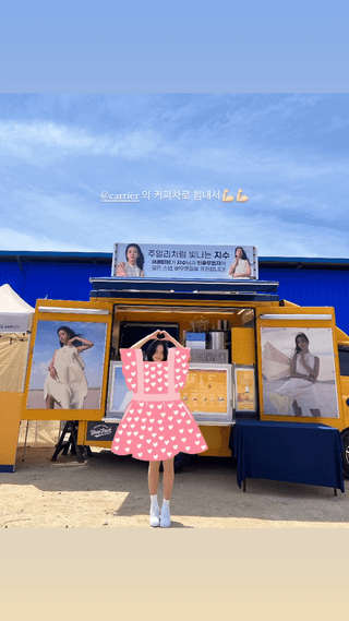 *Translation*>“Gelato on a hot day.. love you cartier♥️♥️”>”Gaining strength from Cartier’s coffee truck 💪🏼💪🏼”