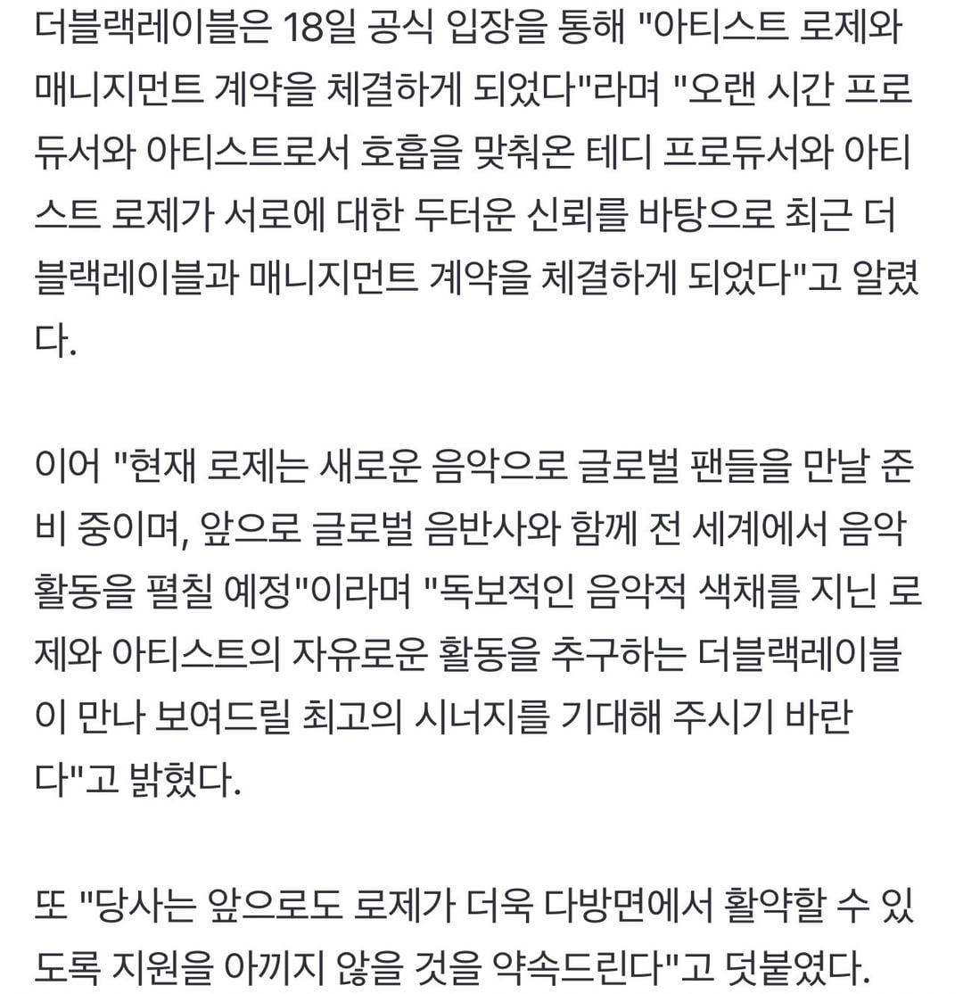 ROSÉ has signed an exclusive contract with THEBLACKLABEL for individual activities.