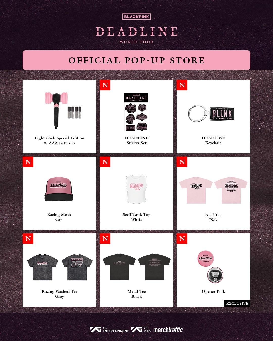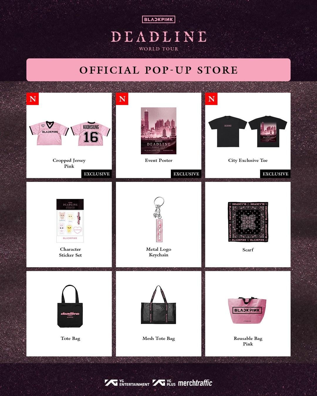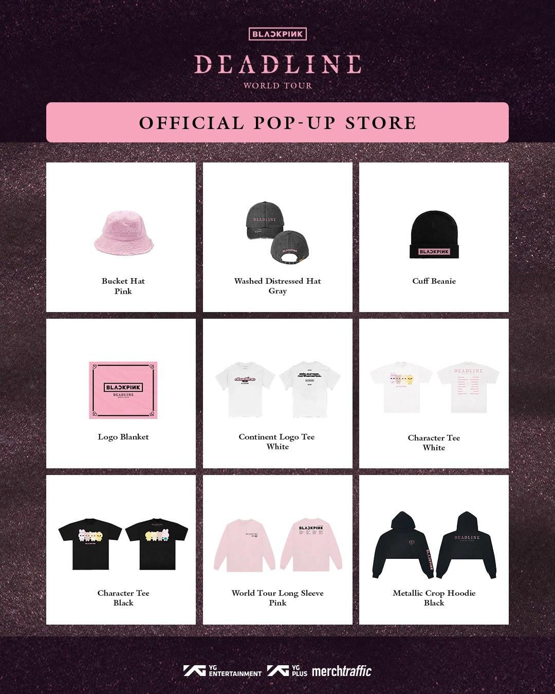 To celebrate BLACKPINK WORLD TOUR <DEADLINE>, Step into a world of BLACKPINK to shop the exclusive tour merch, fashion items, and special collectibles.