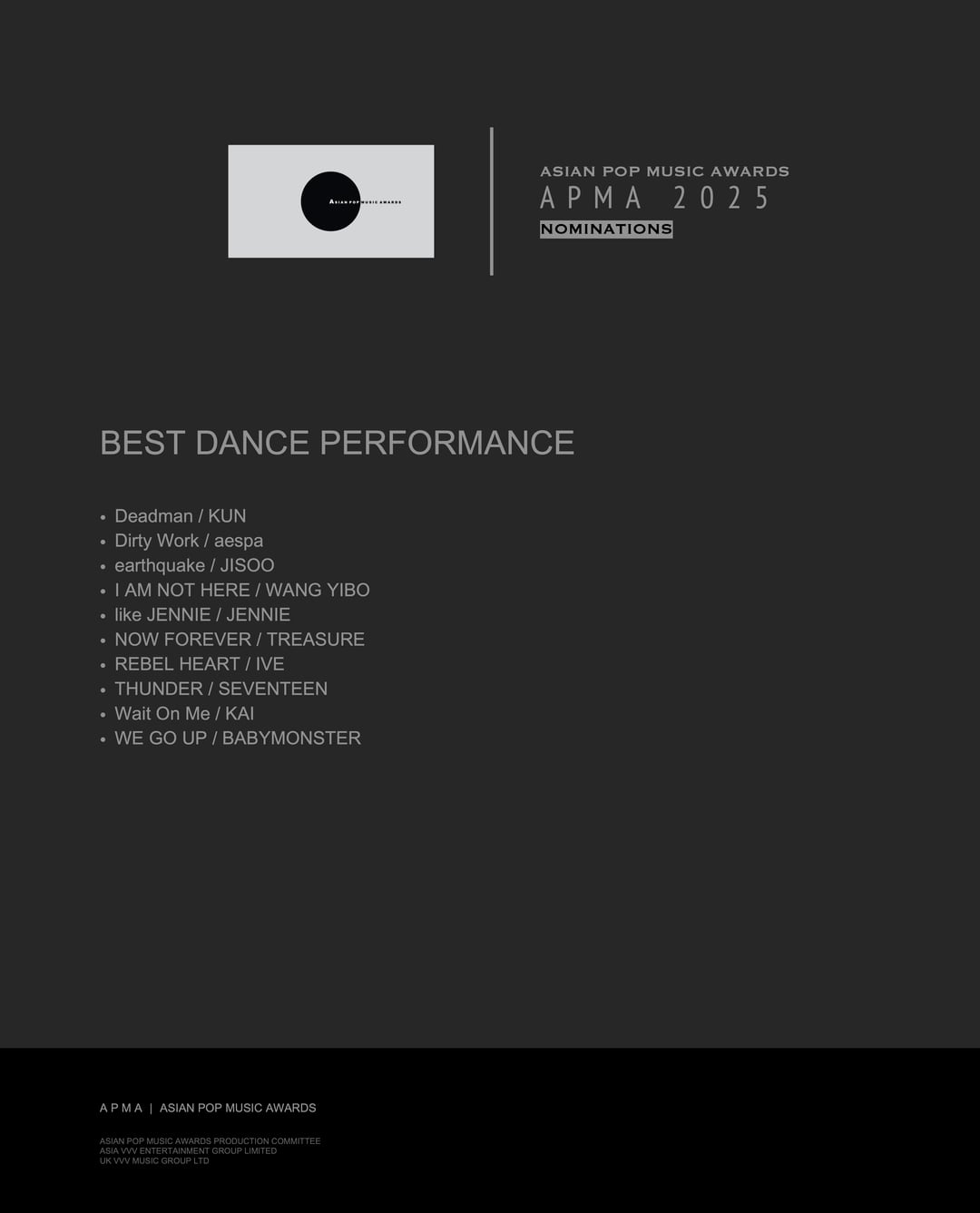 251202 BLACKPINK, JISOO, JENNIE, ROSÉ & LISA have been nominated in 9 CATEGORIES at the Asian Pop Music Awards 2025 including ‘SONG OF THE YEAR’ & ‘RECORD OF THE YEAR’!