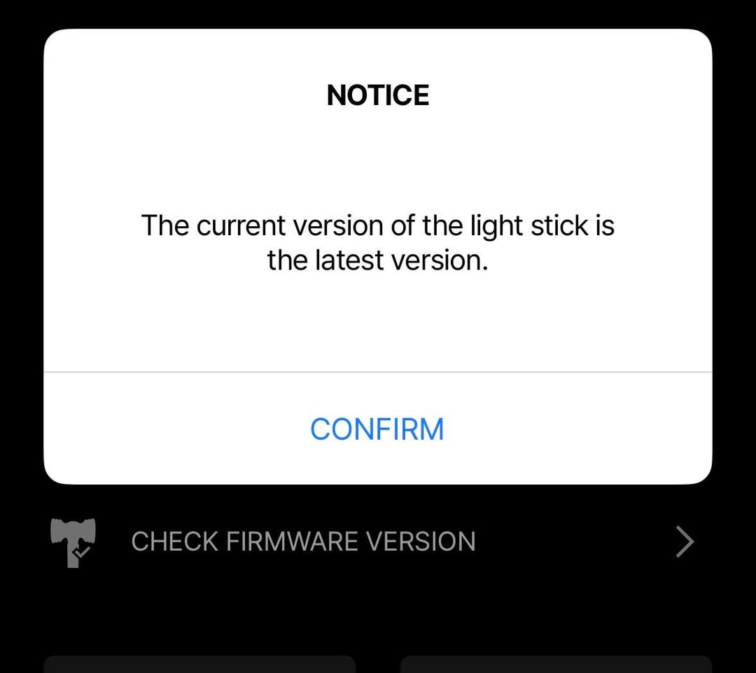 Hello I recently got the bp lightstick (ver 1) and I have trouble connecting it to the app. The issue seems to be that the lightstick is not updated to the latest firmware version, but when checking the version on the app it says that it IS the latest version?