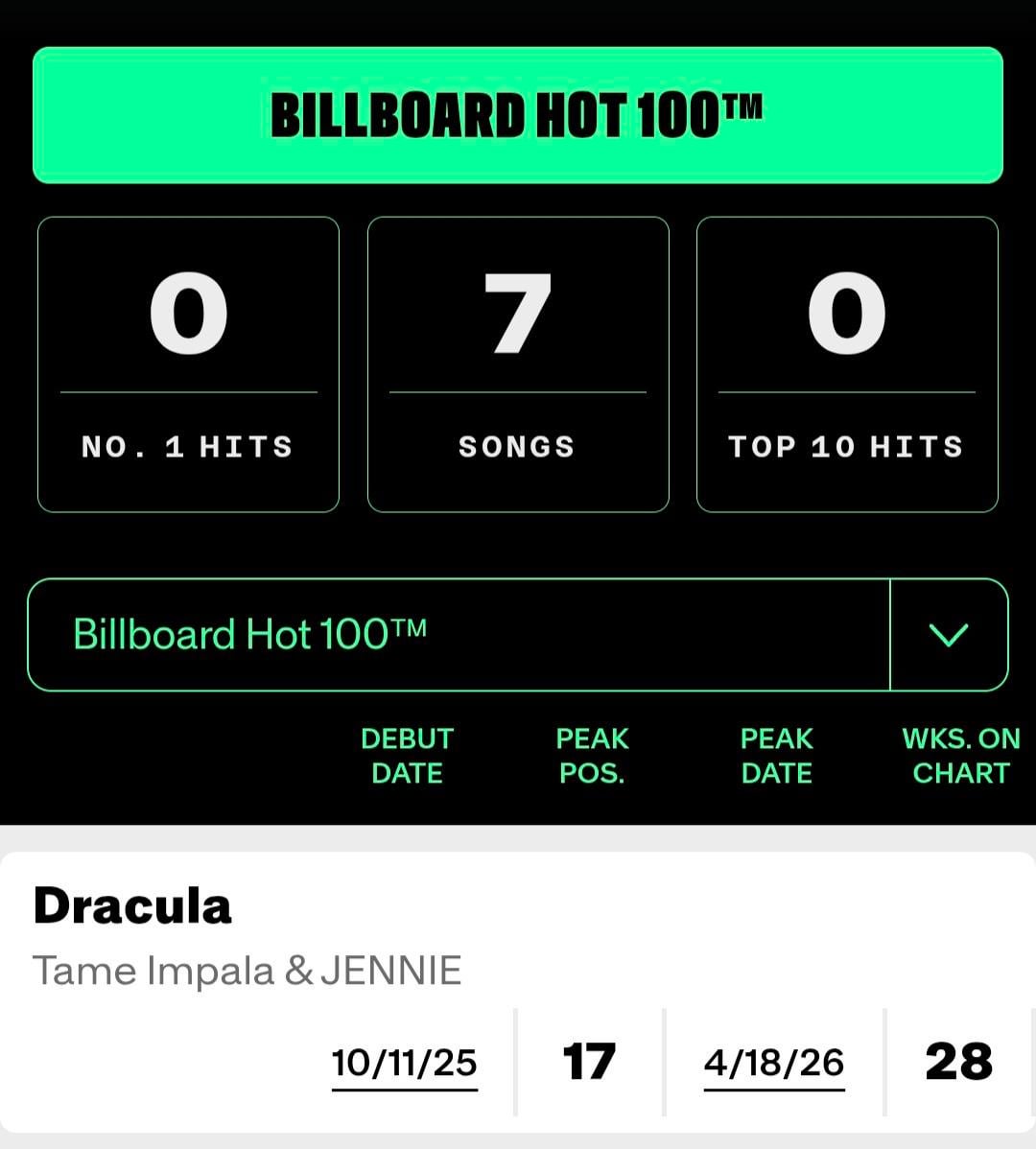 260407 Tame Impala & JENNIE – ‘Dracula’ reaches new peaks at #3 on the Billboard Global 200, #2 on the Billboard Global Excl. U.S. & #17 on the Billboard Hot 100!