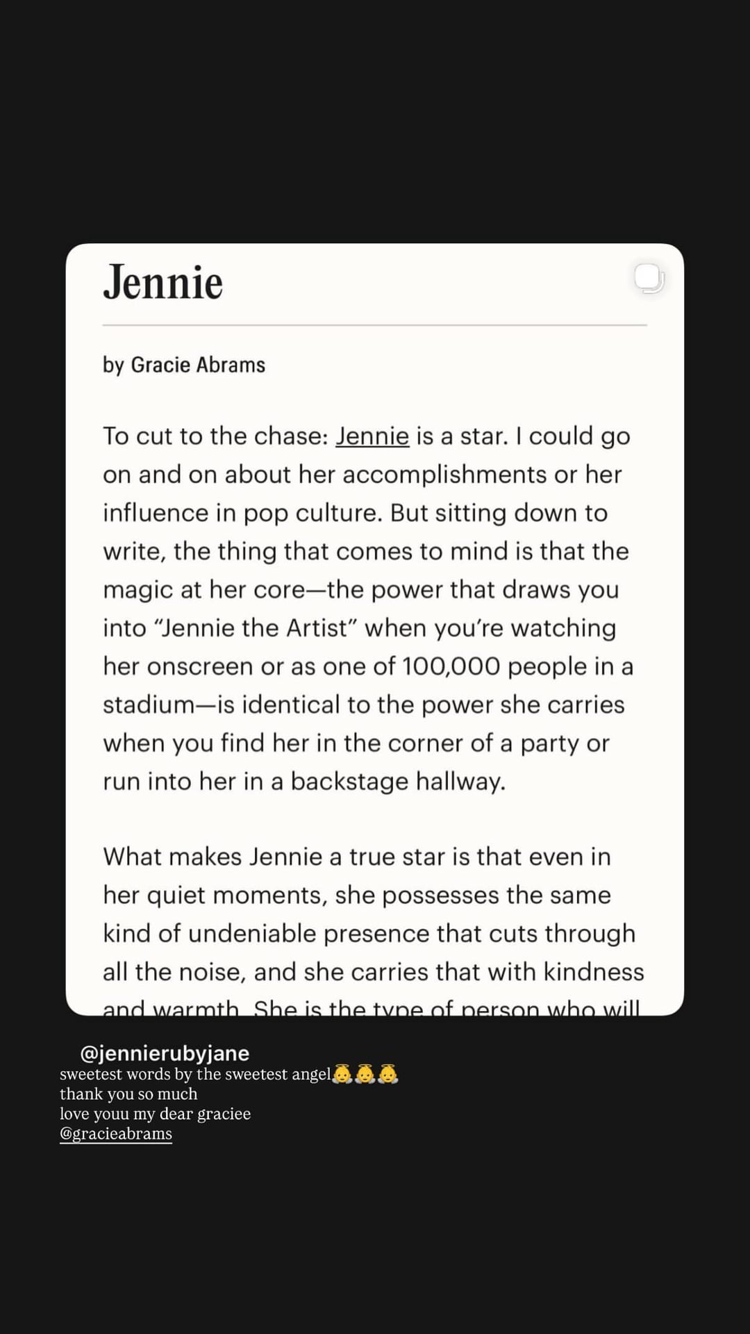 260425 Jennie IG Story Update