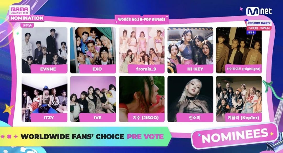 Congrats to our Chu on the nominations! You can vote now for Jisoo to win ‘Worldwide Fans’ Choice’ via the [Mnet Plus App](https://twitter.com/mnetmama/status/1714935193424003285?s=46&t=zFJp2AiHQ8DMpuTzwwaOgg) and [Spotify](https://twitter.com/mnetmama/status/1714937316060602801?s=46&t=zFJp2AiHQ8DMpuTzwwaOgg)!